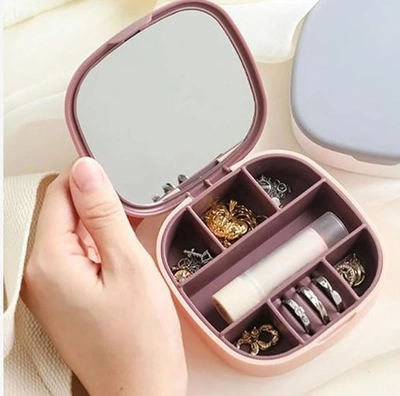 Mbajini bizhuteritë tuaja të organizuara dhe të sigurta me këtë kuti bizhuterish të lëvizshme dhe kompakte. Kjo kuti është e përkryer për udhëtime, falë përmasave të saj të vogla prej 10 cm x 10 cm x 3 cm .