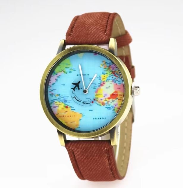Kjo është një orë unike me dizajnin e një harte botërore në sfondin e saj. Me një brez të kaltër të ndritshëm dhe një kornizë metalike, ajo tërheq vëmendjen dhe frymëzon ndjenjën e udhëtimit dhe aventurës. Në qendër të orës shfaqet një avion i vogël, duke simbolizuar lëvizjen përreth globit. Ideale për ata që kanë pasion për eksplorimin e botës dhe udhëtimet.
