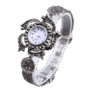 Kjo orë delikate për femra sjell një stil unik vintage me një dizajn të punuar me detaje të pasura filigrani dhe ornamente të ndritshme. Me një rrip elegant metalik që imiton stolitë tradicionale, ora ofron një pamje të veçantë dhe të rafinuar. Cilësia dhe finesa e saj e bëjnë këtë aksesor ideal për ngjarje speciale dhe kombinime klasike, duke e shndërruar në një pjesë të veçantë të koleksionit tuaj të aksesorëve. Ora është perfekte për ato që preferojnë një stil të veçantë dhe të sofistikuar.