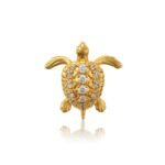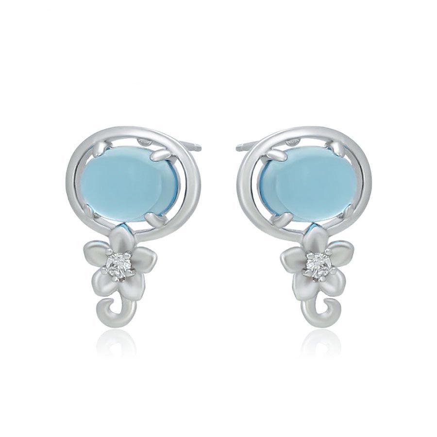 Vathë elegant me gur sintetik të kaltër dhe me një lule me gur të bardhë në mes.